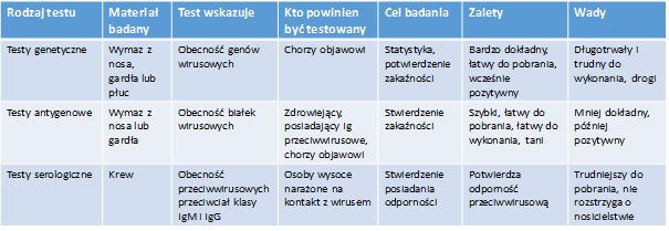 Do testowania pacjentów podejrzanych o zakażenie SARS-CoV-2 dostępne są obecnie trzy podstawowe rodzaje testów: genetyczne, antygenowe i serologiczne.